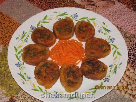 هویج رنده شده خام ( ۱فنجون ) ** سیب زمینی خرد و سرخ شده ( ۱ فنجون ) **