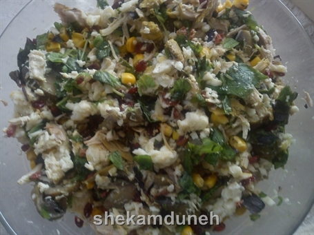 خمیر پیتزا ** مرغ پخته و خرد شده (یک و نیم پیمانه ) ** پنیر پیتزا (یک دوم پیمانه ) ** ذرت پخته (یک دوم پیمانه ) ** زرشک ( یک چهارم پیمانه ) ** ریحان خرد شده( ۴قاشق غذاخوری ) ** فلفل دلمه ای خردشده( ۳قاشق غذاخوری ) ** نمک و فلفل و آویشن به مقدار لازم طرز تهیه: همه مواد رو در ظرفی میریزیم و با هم خوب مخلوط میکنیم و کنار میذاریم .....