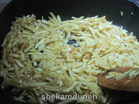 من شلغم رو خلال کردم و با یه کم روغن و زردچوبه یه تفش دادم  و بعد توی آش ریختم.....